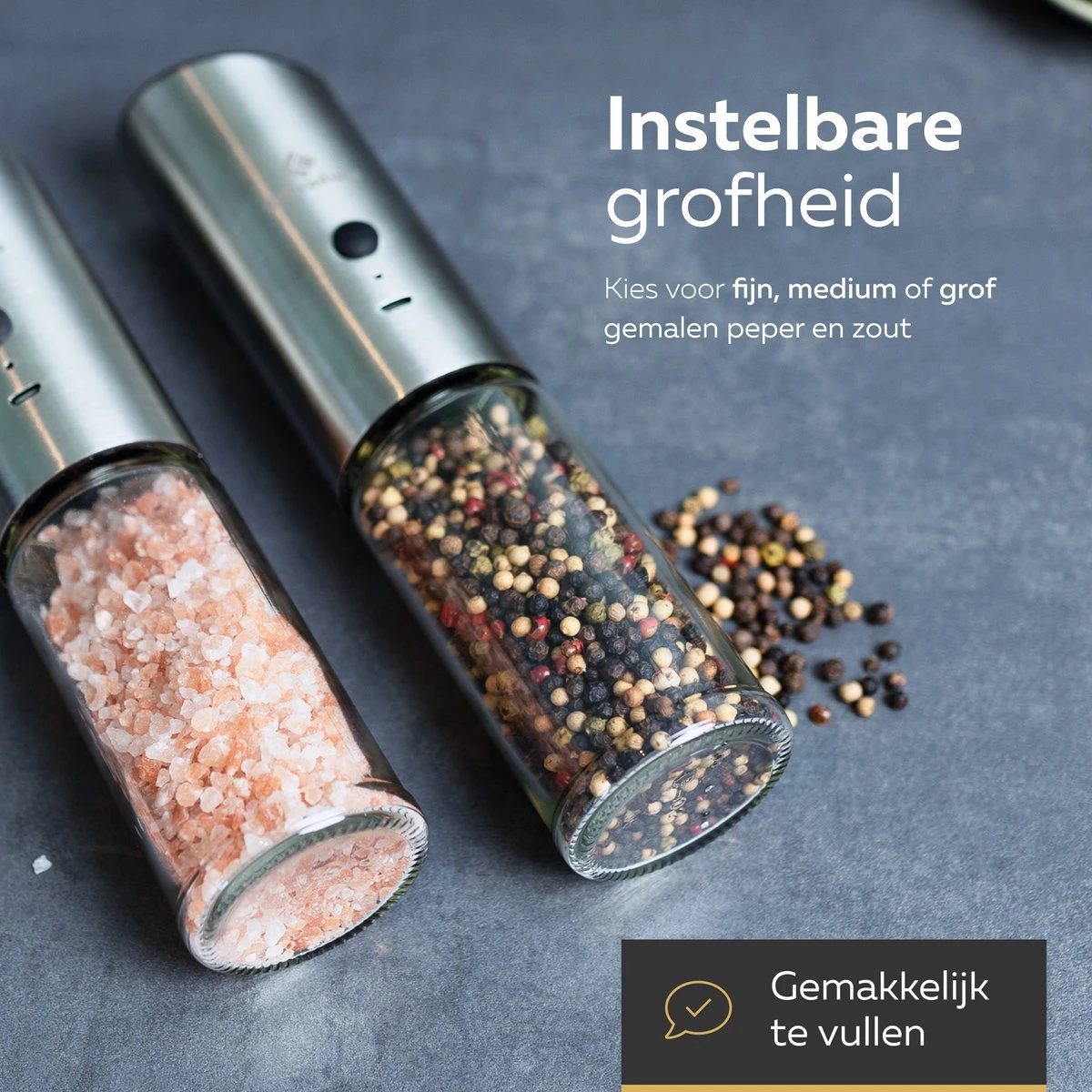 De tijd dat je handmatig peper en zout maalde, is geweest. Deze volledig elektrische peper- en zoutmolen wordt door zwaartekracht geactiveerd, draai hem simpelweg gewoon ondersteboven en bestrooi jouw lievelingsmaal met versgemalen peper, zeezout of andere kruiden.