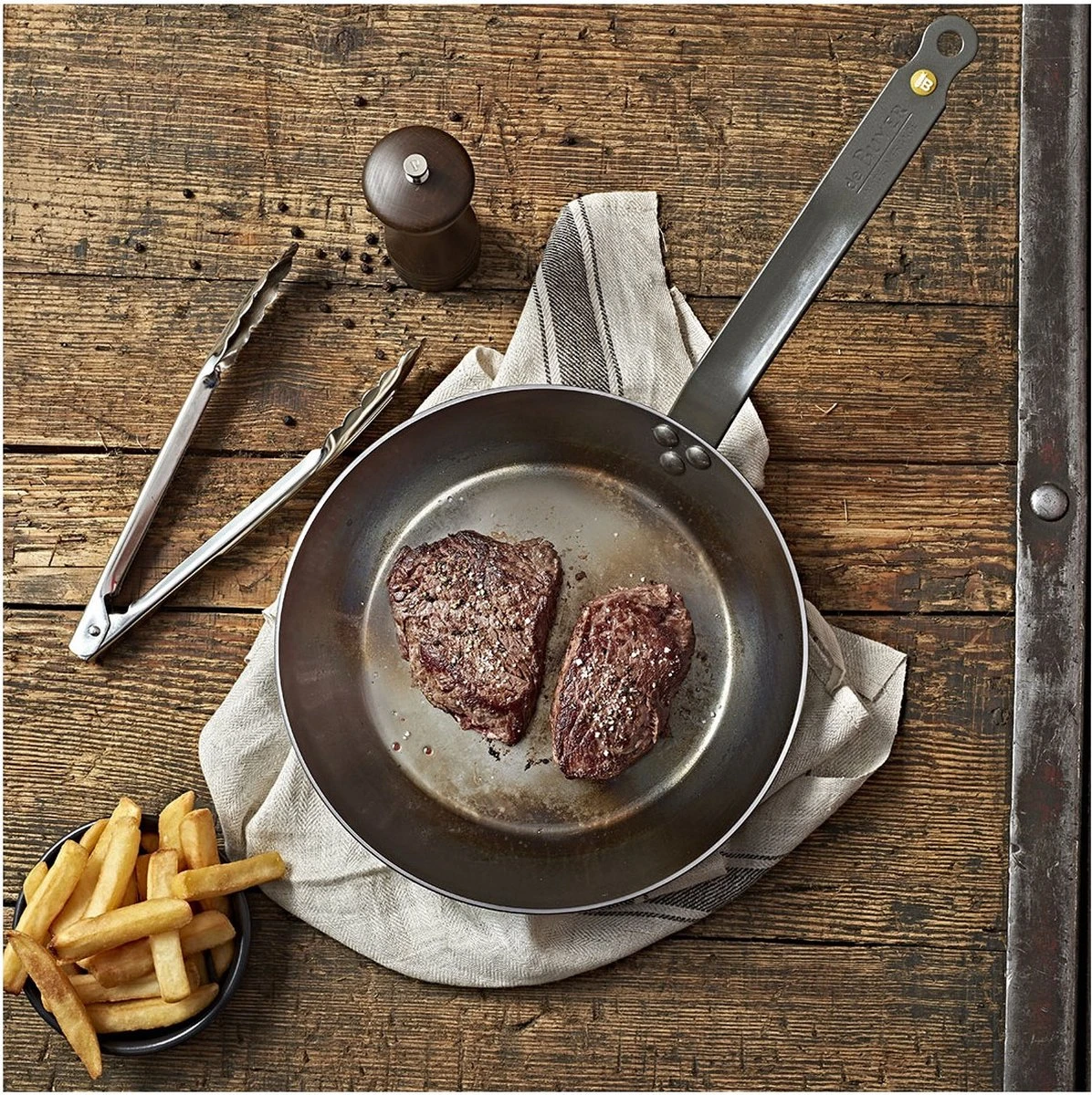 Deze Mineral B Element koekenpan van De Buyer staat garant voor topkwaliteit. De pan heeft een organische constructie die voor 99% uit zuiver ijzer bestaat. IJzer is een 100% natuurlijk mineraal materiaal. De pan kan hoge temperaturen bereiken, waardoor hij uitermate geschikt is voor afdichten, aanbraden en grillen. De koekenpan is voorzien van een natuurlijke antiaanbakbescherming. Er is gegarandeerd geen coating toegepast. De pan wordt donkerder naarmate hij meer gebruikt wordt. Dit is bevorderlijk voor de prestaties en zal de functionaliteit van de natuurlijke antiaanbakeigenschappen stimuleren. Het is een ecologisch recyclebaar product. Tijdens de productie zijn er geen chemicaliën toegevoegd.