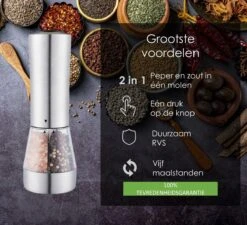 IGOODS Keramiek Elektrische Pepermolen En Zoutmolen – Pepermolen – Zoutmolen – 2 Stuks- Wit